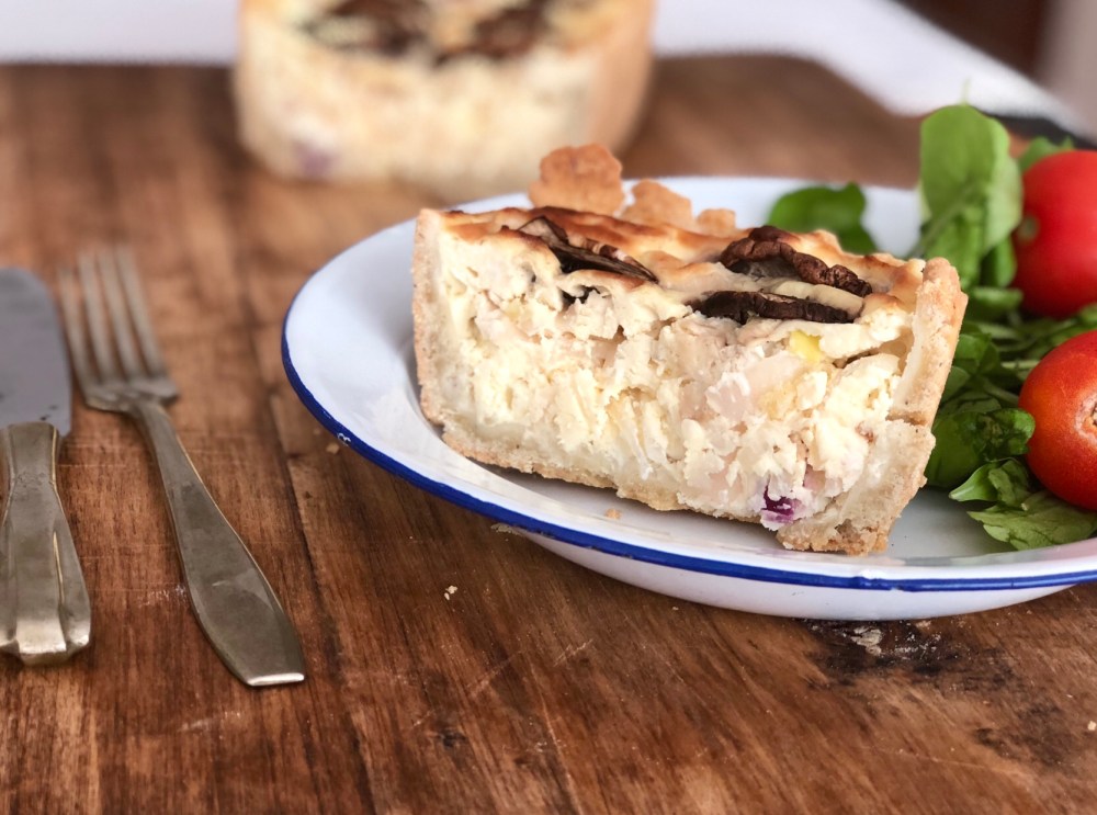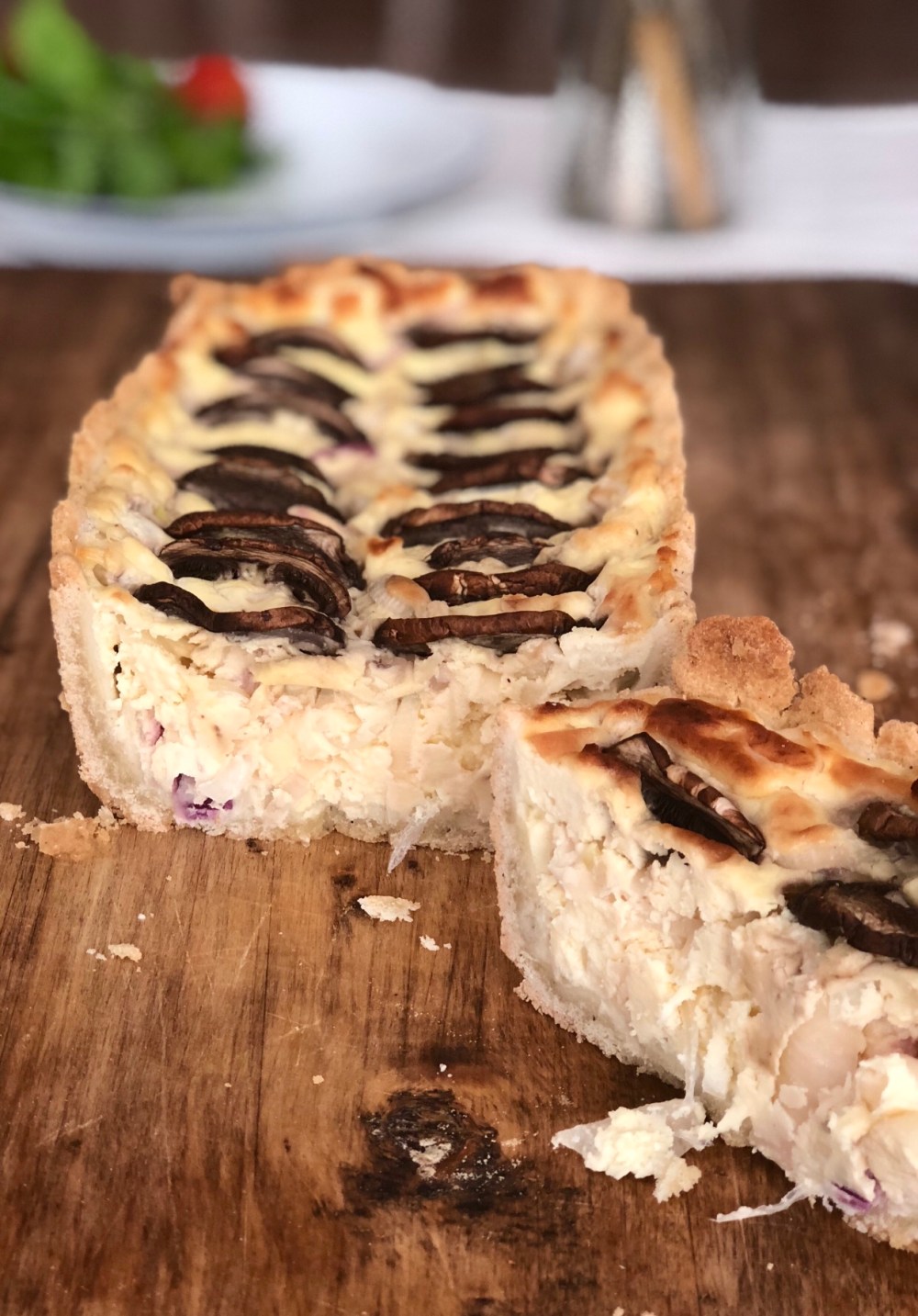 Esta es para mi una versión de cheesecake salado, quiché o directamente ¡tarta de queso! Es súper suave y lleva pocos ingredientes, ideal para un almuerzo acompañado de una ensalada fresca. Y un dato no menor, ¡la masa es sin gluten!
