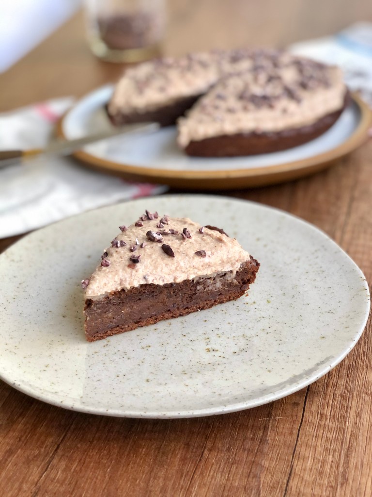 Hacía bastante tiempo que no preparaba este brownie y me di cuenta que aún no había subido esta receta al blog, así que como tenía en mente hacer un nuevo postre que combine cacao y lúcuma, me pareció el momento perfecto para compartirla. Pero tranquilos, que si en donde viven no consiguen lúcuma en polvo (ya que es una fruta peruana como les comenté en mi receta de Torta marmolada de lúcuma y chocolate), pueden hacer la versión chocolatetosa: base de brownie y mousse de choco.
