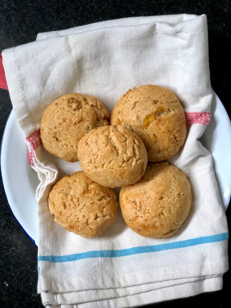 Esta es una receta adaptada del libro La India Vegetariana de Meera Sodha. Adaptada porque los hice sin gluten y variando alguno de sus ingredientes, pero la esencia es la misma y estoy feliz con esta primera receta que hago de este libro que compré hace poco. ¡Las especias son todo! Nunca se me había ocurrido agregar a una masa cardamomo, ¡quedó espectacular!