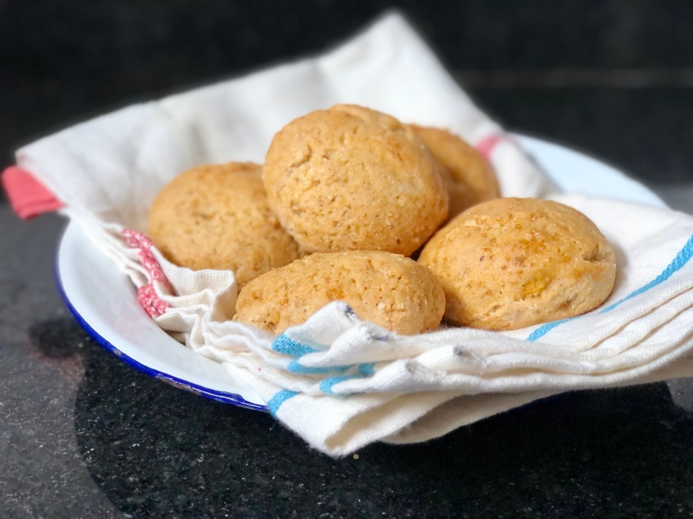 Yendo a la receta, se trata de unos pancitos ligeramente dulces, creo que eso también varía según el plátano que se utilice. En mi caso usé plátano palillo, que es el que tenía en casa a punto caramelo para cocinar. Estos pancitos están buenísimos para incorporar en el desayuno. Eso sí, se comen calentitos; si se hacen de un día para el otro, recomiendo calentarlos un poco antes de comerlos, en un hornito, tostadora o mismo una sartén.