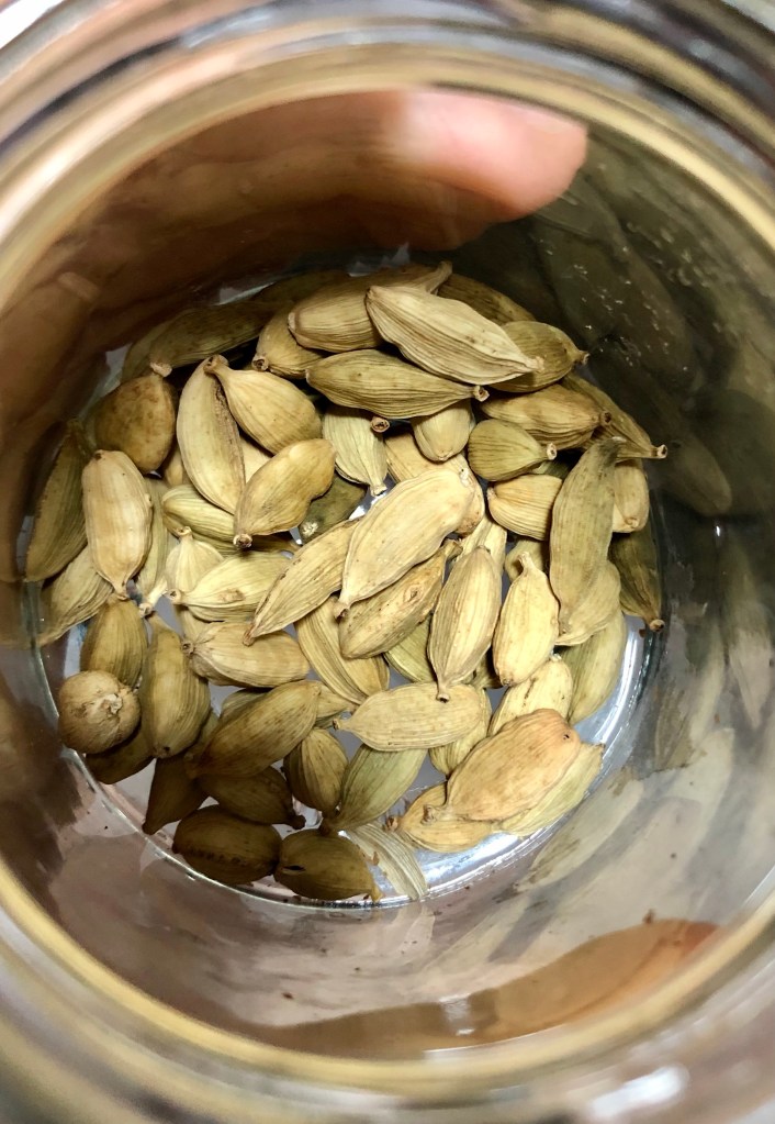 - semillas de 6 vainas de cardamomo, bien molidas (equivale a 1/2 cdta de cardamomo molido)