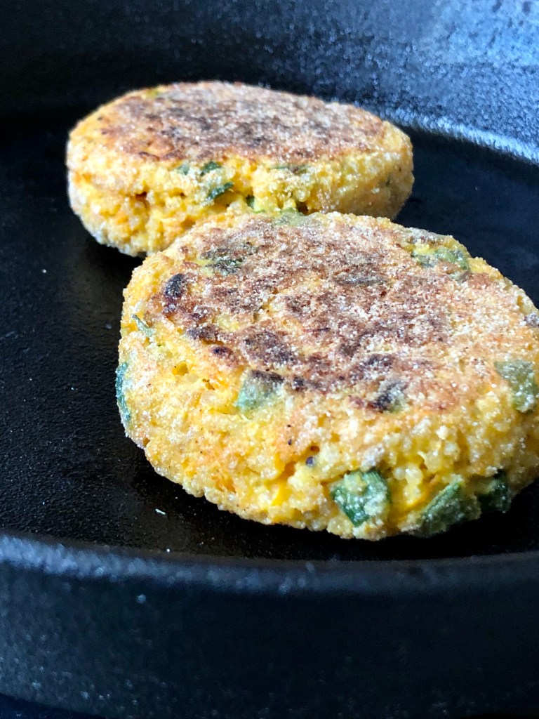- Cocinamos en una plancha bien caliente con un poco de aceite de coco, 5 minutos de cada lado, cuidando que no se quemen. También se pueden cocinar en el horno.